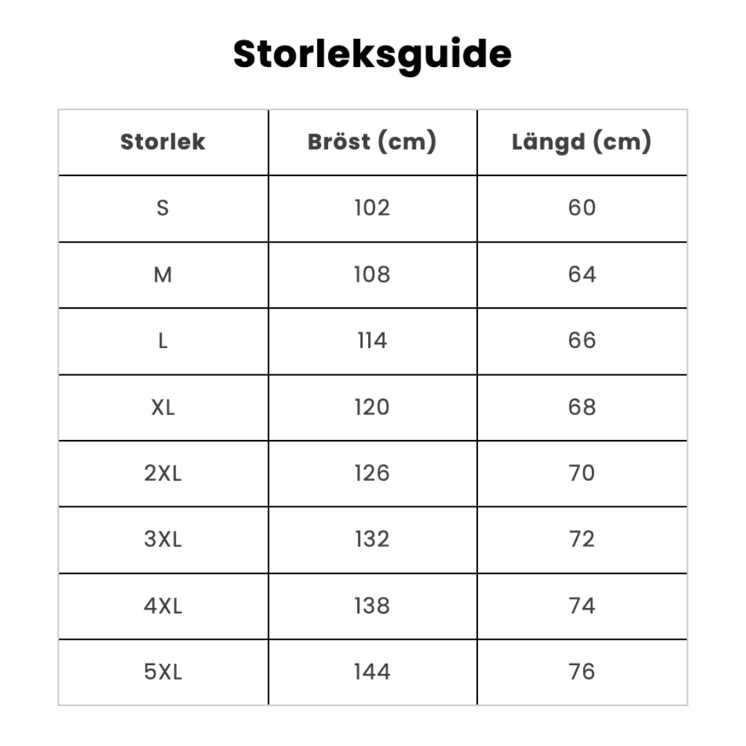 | Storlek | Bröst (cm) | Längd (cm) |