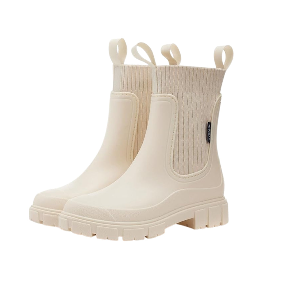 Kelsey™ Gummistövlar har rund tå, låg blockklack och en 3,8 cm platå, vilket gör dem både snygga och praktiska. Den beige färgen passar till alla outfits och är perfekt för vardagsbruk, arbete eller avslappnade utflykter.
