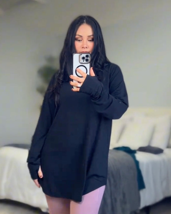 Älskar den här! Supermysig och tumhålen är en så fin detalj. Sitter avslappnat som beskrivet, och jag kan enkelt bära den över mina jackor.