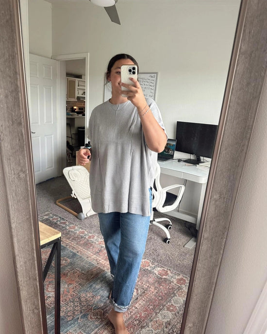 Den här tröjan är så bekväm och snygg. Jag älskar sidoslitsen på tröjan. Perfekt för både jobbet och lata helger hemma.